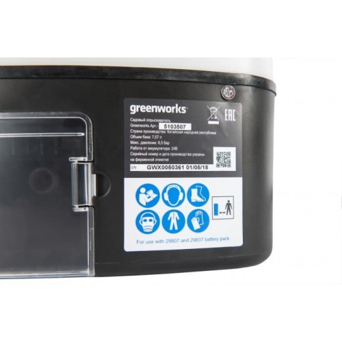На садовый опрыскиватель 24V, как и на большинство садовой техники Greenworks, распространяется расширенная гарантия 2 года.