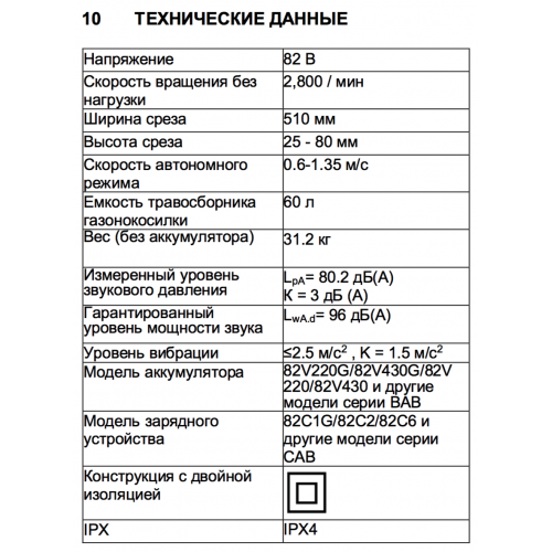 Газонокосилка работает от аккумуляторной батареи 82V, которую можно использовать другими с устройствами линейки 82V.