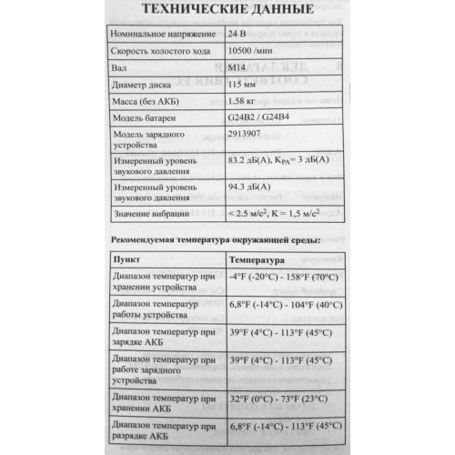 | Используемое зарядное устройство, артикул: | 2903607, 2932407 |