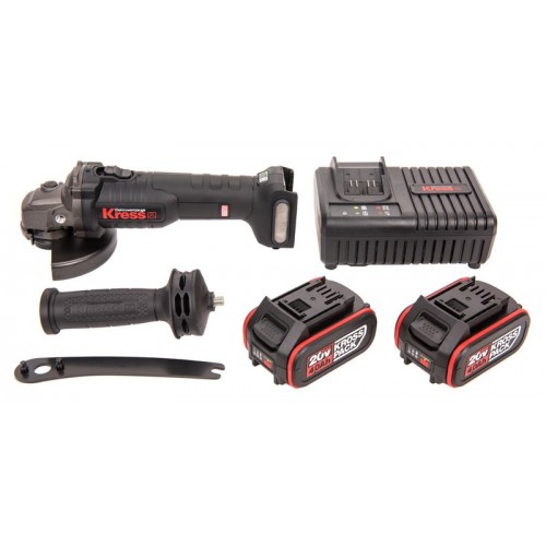 Угловая шлифмашина (болгарка) KRESS KU801 20V (125мм) аккумуляторная с двумя 4Ач АКБ, 6А ЗУ и кейсом