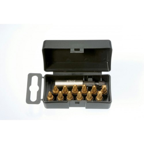 Felo Набор из 12 бит 25 мм PZ/PH TiN с держателем бит в кейсе размерами PZ 1, PZ 2, PZ 3, PH 1, PH 2 и PH 3. Набор предназначен для работ с различного рода крепежом.