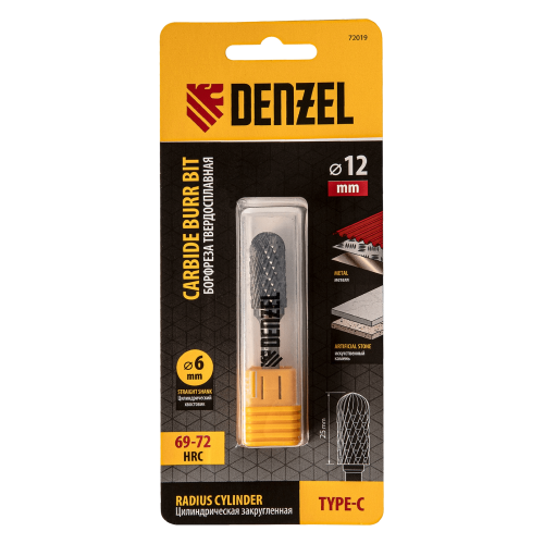 Твердосплавная борфреза Denzel 72019 с цилиндрической закругленной рабочей частью (тип C), диаметром 12 мм, предназначена для шлифовальных работ по металлу: закаленной и нержавеющей стали, латуни, чугуну, бронзе, титану, меди. Также используется для обработки искусственного камня и металлокерамики. Борфреза позволяет зачищать сварные швы, удалять заусенцы и снимать фаски. Форма рабочей части оптимальна для обработки радиусных пазов, поверхностей с плавными изгибами. Также с помощью борфрезы можно быстро и эффективно восстановить гравировку. Оснастка устанавливается на дрель или прямошлифовальную машину.