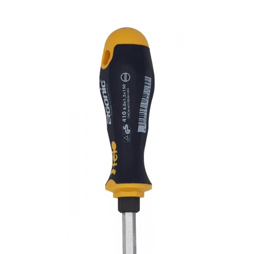 Рукоятка ERGONIC - первая в мире бесшовная рукоятка, которая адаптируется под руку любого пользователя, снижает нагрузку и утомляемость, а также увеличивает комфорт и максимальный крутящий момент. Продуманный дизайн рукоятки не позволяет инструменту скатываться с поверхности. Внешнее покрытие рукоятки имеет высокую устойчивость к царапинам и ГСМ. На верхней части рукоятки указан тип шлица.