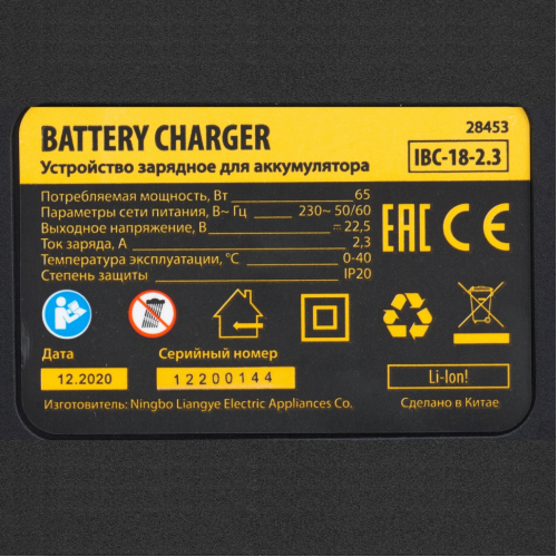 Зарядное устройство для аккумуляторов DENZEL IBC-18-2.3, Li-Ion, 18 В, 2.3 А