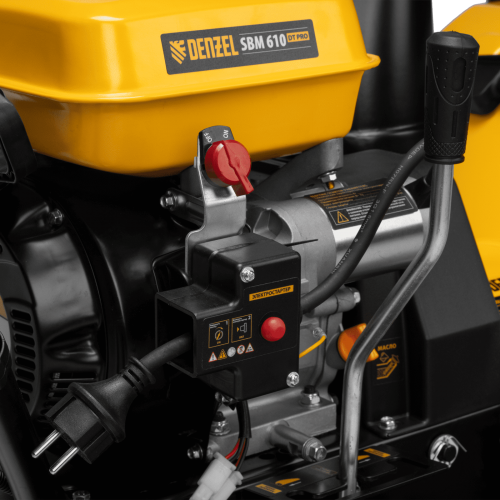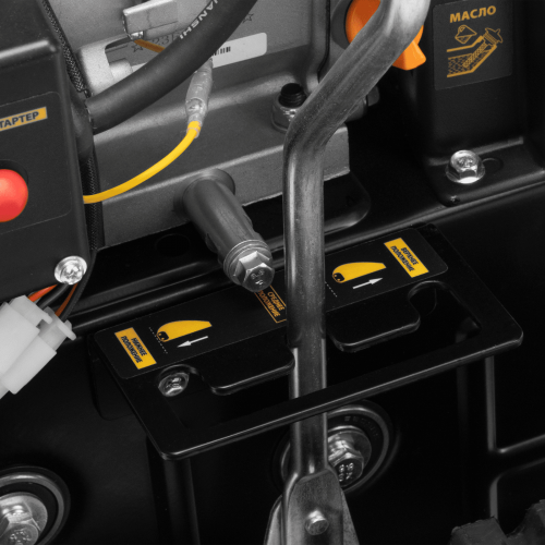 - Электростартер — для быстрого запуска двигателя достаточно подключить машину к розетке 230 В и нажать на кнопку.