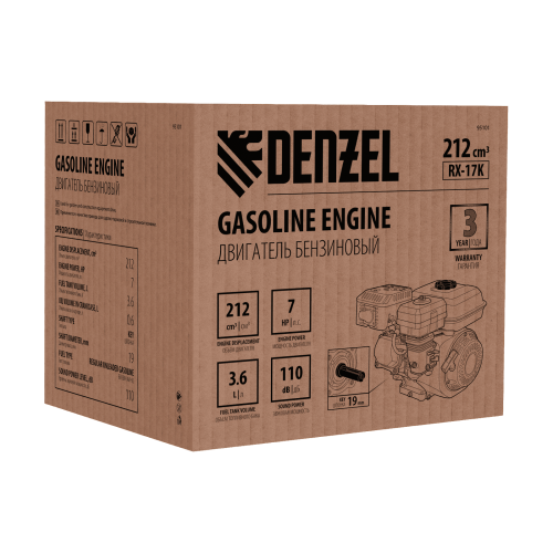 Двигатель для мотоблоков DENZEL RX-17K, 7 л.с., 212 см3, горизонтальный вал, шпонка 19 мм