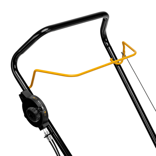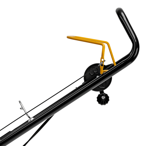 - Удобное управление — широкая рукоятка ручного старта облегчает запуск двигателя, для регулировки угла поворота желоба не нужно наклоняться.