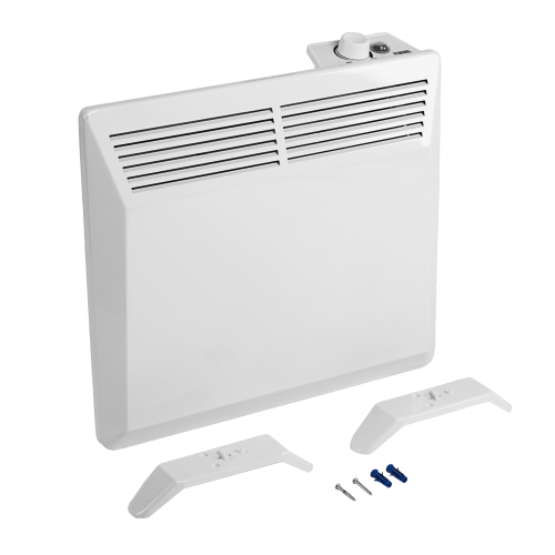 - Два варианта монтажа — можно расположить конвектор на полу или повесить на стену. Ножки и кронштейны входят в комплект поставки.
