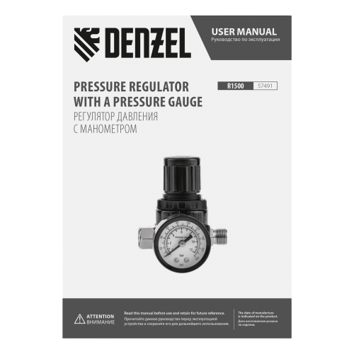 Регулятор давления с манометром DENZEL R1500, 12 бар, 1/4"