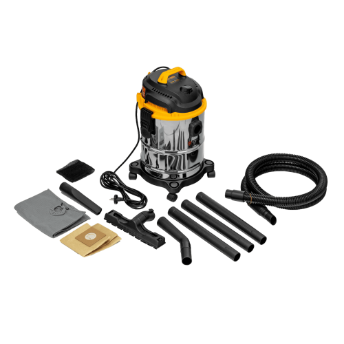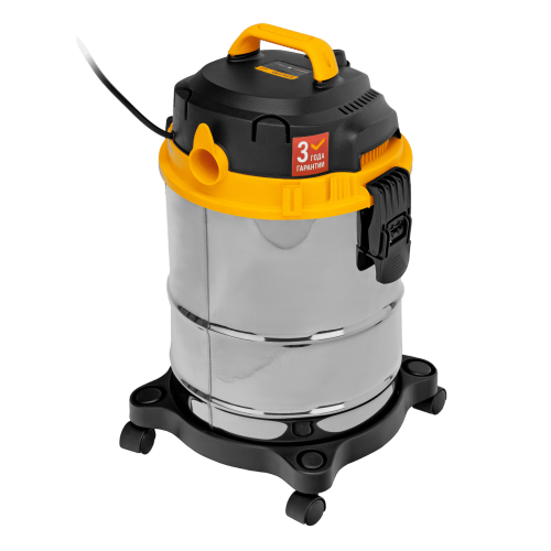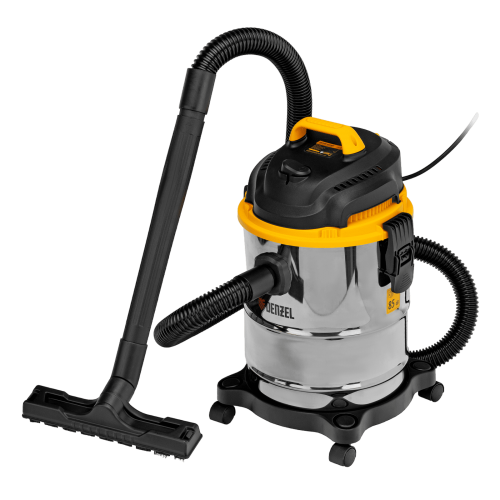 Пылесос строительный Denzel SVC15 28201 мощностью 1200 Вт, с баком объемом 15 л и шлангом длиной 2 м, предназначен для уборки бетонной, кирпичной пыли, опилок, стружки, также предусмотрена функция сбора воды. Пылесос используется во время проведения строительных и ремонтных работ, будет полезен для поддержания чистоты в мастерской, гараже, производственном помещении.