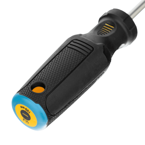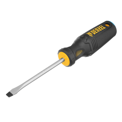 Отвертка SL6 х 100 мм Denzel 12198 из стали CrV, с трехкомпонентной рукояткой, используется для монтажа и демонтажа винтов и саморезов с прямым шлицем Slotted. Намагниченный шлиц крепко фиксируется в головке крепежа. Отвертка выдерживает интенсивное применение и предназначена для выполнения профессиональных ремонтных и монтажных работ.