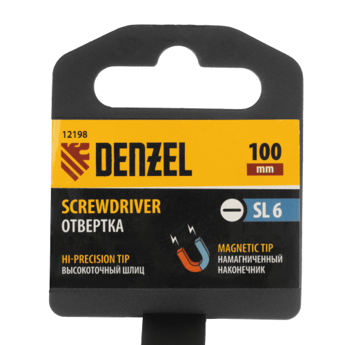 Отвертка DENZEL SL6x100 мм, CrV, трехкомпонентная рукоятка