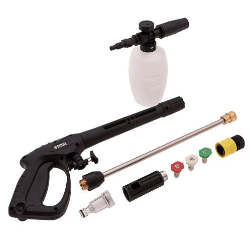 - Подготовка к работе за несколько секунд — быстросъёмный коннектор пистолета позволяет подключить шланг одним движением.