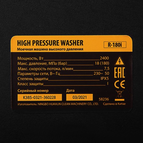 Мойка высокого давления DENZEL R-180i, 2400 Вт, 180 бар, 7.5 л/мин