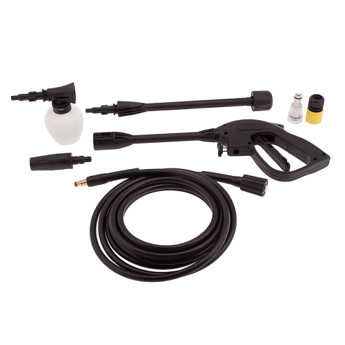 | Комплектация | Мойка - 1 шт, ручка - 1 шт, шланг высокого давления - 1 шт, пистолет моечный - 1 шт, насадка-удлинитель - 1 шт, регулируемая насадка-сопло на пистолет - 1 шт, насадка-пеногенератор - 1 шт, входной штуцер с фильтром - 1 шт, быстросъемный адаптер для входного шланга - 1 шт, кронштейн - 1 шт, держатель пистолета - 1 шт, игла для прочистки сопла - 1 шт, руководство по эксплуатции - 1 шт |