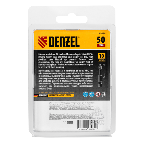 Бита DENZEL IMPACT, PH1x50 мм, лазерная обработка шлица, сталь S2, 10 шт., Е 6,3