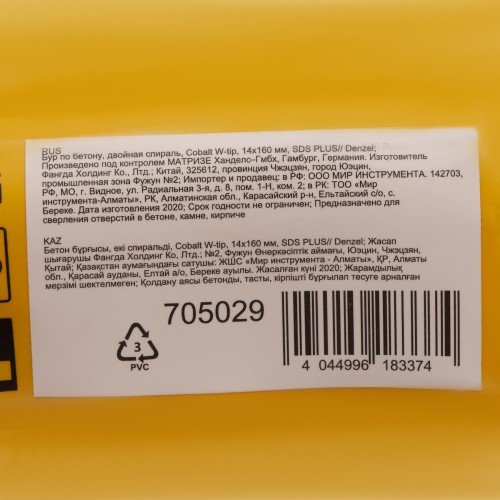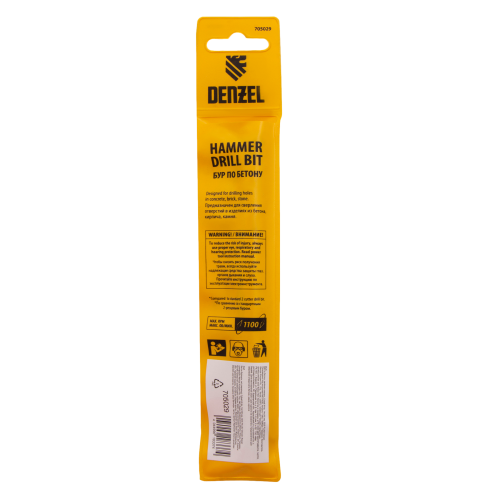 Бур по бетону Denzel арт. 705029 с хвостовиком SDS PLUS и двойной спиралью предназначен для сверления отверстий в бетоне, кирпиче и камне. Он используется в качестве оснастки для перфораторов с патроном SDS Plus. Бур оптимален для проведения строительных, ремонтных, монтажных работ.