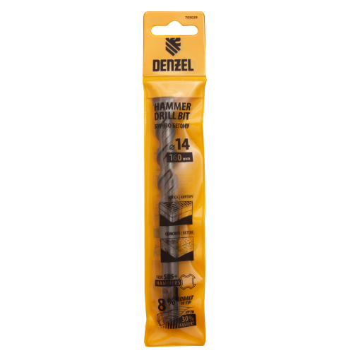 Бур по бетону DENZEL 705029, 14 x 160 мм, двойная спираль, три пылеотводящие кромки