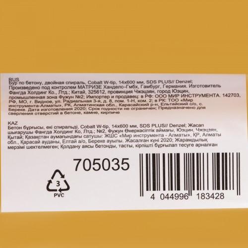 Бур по бетону Denzel арт. 705035 с хвостовиком SDS PLUS и двойной спиралью предназначен для сверления отверстий в бетоне, кирпиче и камне. Он используется в качестве оснастки для перфораторов с патроном SDS Plus. Бур оптимален для проведения строительных, ремонтных, монтажных работ.