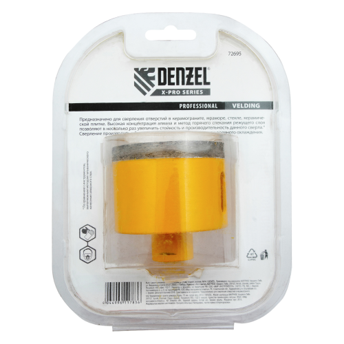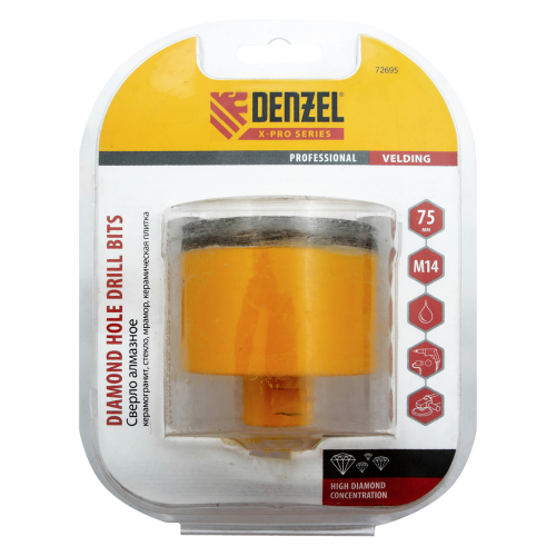 Сверло алмазное по керамограниту DENZEL 72695, 75 мм, М14, мокрая резка