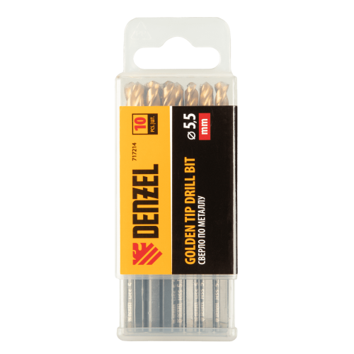 Сверло по металлу DENZEL 5,5 мм, HSS-Tin, Golden Tip, 10 шт.