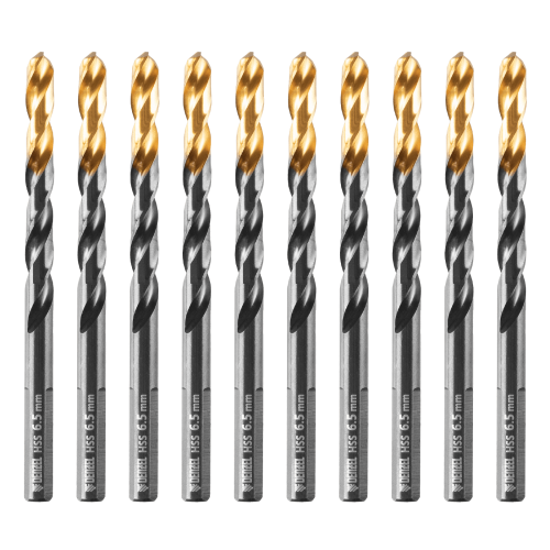 Сверло по металлу DENZEL 6,5 мм, HSS-Tin, Golden Tip, 10 шт.