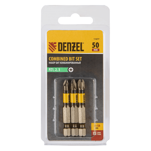 Набор бит комбинированный DENZEL 3 шт., PZ1, PZ2, PZ3, 50 мм, сталь S2