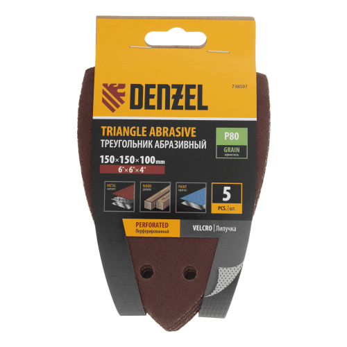 Треугольник абразивный на ворc. подложке под "липучку", перф., P 80, 150х150х100 мм, 5 шт. Denzel