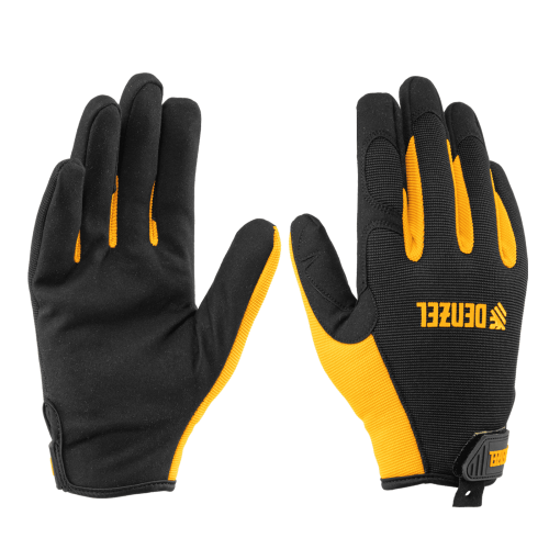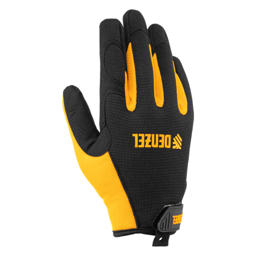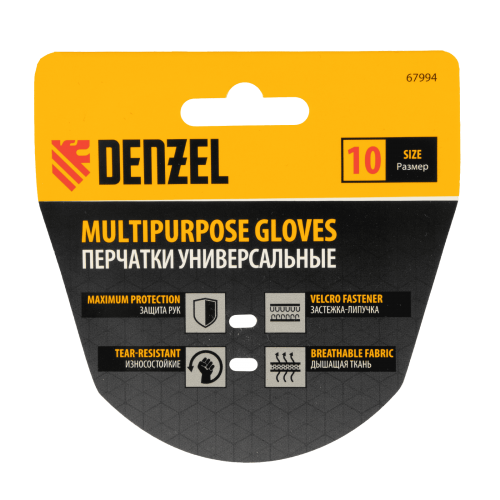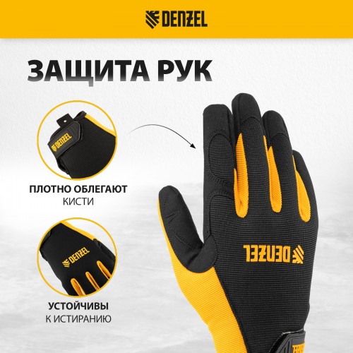 Универсальные перчатки Denzel 67994 размера 10, с манжетами на «липучке», используются для работы со слесарным инструментом. Надежно защищают кожу рук от царапин и мозолей. Пригодятся в мастерской, дома или в гараже.
