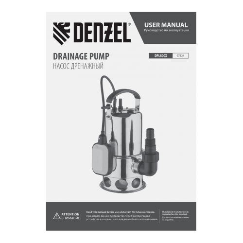 Дренажный насос DENZEL DPL800X, 800 Вт, подъем 10 м, 16500 л/ч