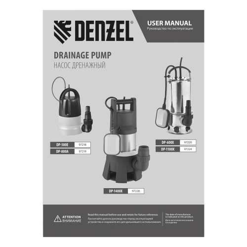 Дренажный насос Denzel DP800A 97219 мощностью 800 Вт и производительностью 13000 л/ч обеспечивает высоту подъема 5 м и подходит для откачки грязной воды с включениями диаметром до 35 мм из резервуаров, подвалов, погребов, канав. Используется также для подачи чистой воды из колодцев и организации систем полива.