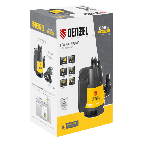 Дренажный насос DENZEL DP800A, 800 Вт, высота подъема 5 м, 13000 л/ч