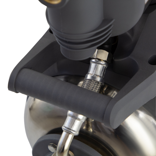 - Долгий срок службы — износостойкое торцевое уплотнение из карбида кремния, корпус насосной части, ресивер и вал из нержавеющей стали, рабочее колесо из прочного пластика рассчитаны на длительное использование.