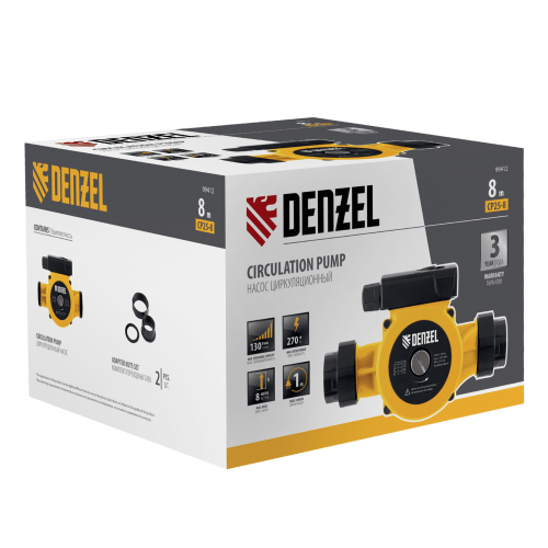 Циркуляционный насос DENZEL CP25-8, напор 8 м, 130 л/мин, 1 м кабель, монт. длина 180 мм
