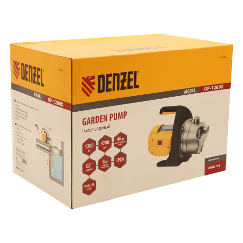 Насос садовый поверхностный DENZEL GP1200Х, 1200 Вт, 3700 л/ч, высота подъема 46 м