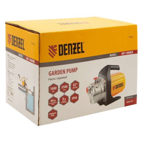 Насос садовый поверхностный DENZEL GP1000Х, 1000 Вт, 3500 л/ч, высота подъема 44 м