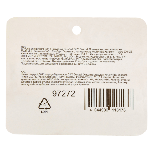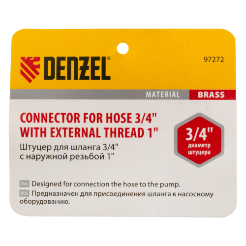 Штуцер для шланга DENZEL 97272, 3/4 дюйм, с наружной резьбой G1