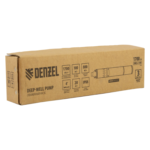 Скважинный насос DENZEL DWS-4-100, 800 Вт, 1700 л/ч, напор 100 м, винтовой, диаметр 4