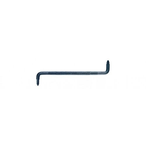 Отвертка Z-образная крестовая двухсторонняя PZ1-PZ2х135 предназначена для работ с крепежом сечения PZ1 и PZ2. Изогнутая Z-образная форма отвертки выдает большее усилие на крепеж и больший крутящий момент за счет прилагаемого более длинного плеча рычага. Отвертка изготовлена из высококачественной инструментальной хром-молибден-ванадиевой стали, дополнительно закаленной в масле для придания большей прочности и твердости инструменту.