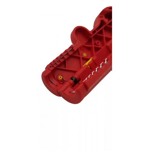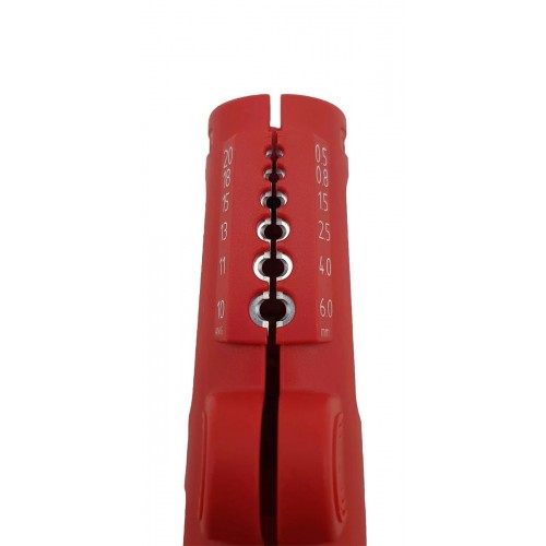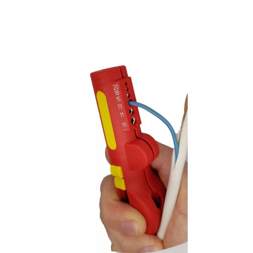 Инструмент имеет несколько лезвий различного назначения: для продольной и поперечной резки оболочки, также выдвижной нож для резки кабеля, устройство для снятия изоляции для круглых проводников сечением от 0,5 до 6,0 мм².