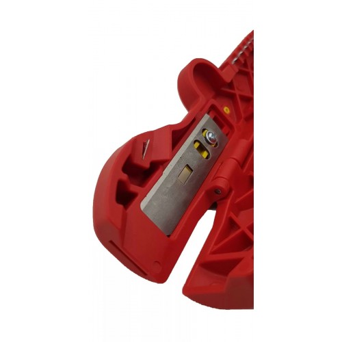 Он не требует установки глубины резки, так как высокопрочное лезвие специальной формы, покрытое нитрид-титаном, автоматически подстраивается к размеру кабеля.