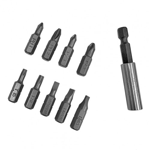 • Размеры бит: SL 0.8х4.0, 1.0х5.5, 1.2х6:5, PH1, PH2, PZ1, PZ2, T15 и Tx20