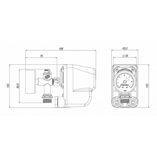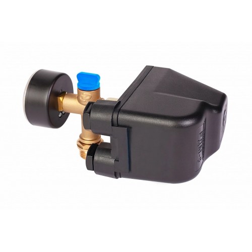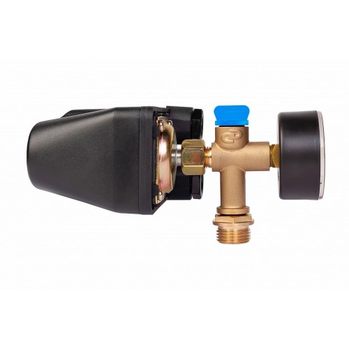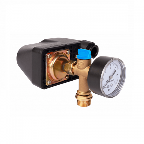 • В комплекте идет манометр, который крепится к отдельному входу штуцера и позволяет отслеживать уровень давления в системе в пределах 6 бар.