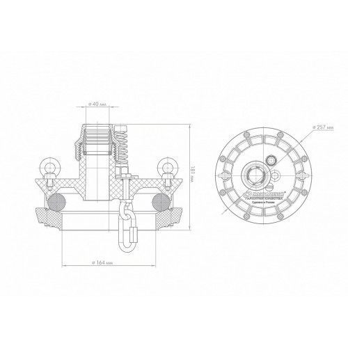 • Отличается простотой монтажа и не требует сварочных работ — для его установки достаточно затянуть болты между основанием и прижимным фланцем, сжимающие уплотнительное кольцо.