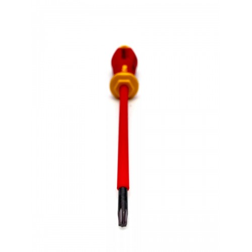 Диэлектрическая отвертка Felo Torx предназначена для электромонтажных работ с крепежом типа Тх 20 в электроустановках под напряжением до 1000 Вольт.