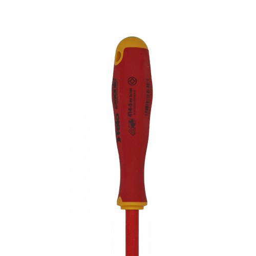 Отвертка диэлектрическая Felo серии E-Slim предназначена для проведения электромонтажных работ с крепежом сечения РН 2 в установках и электрощитах под напряжением до 1000 Вольт.
