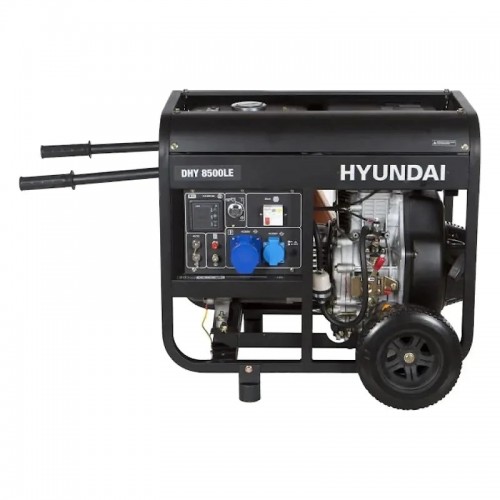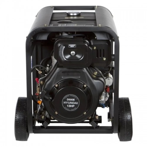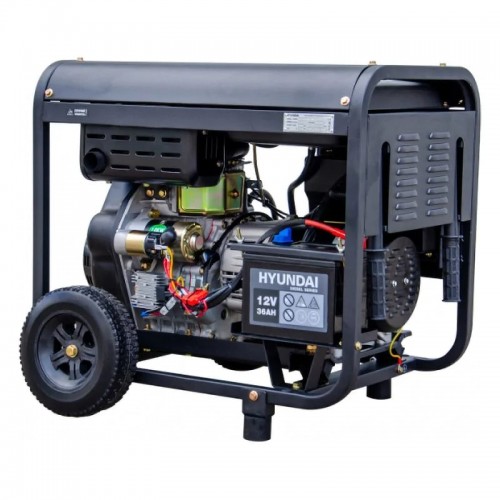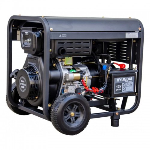 - Транспортировочные колеса облегчают перемещение дизель-генератора Hyundai DHY 8500LE-3.