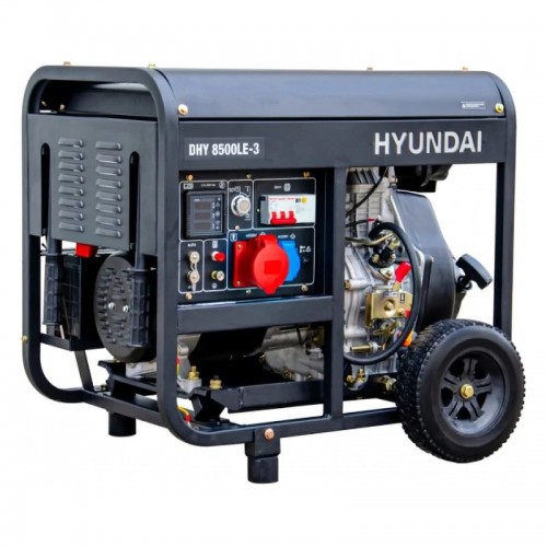 Дизельный генератор Hyundai DHY 8500LE-3 пригодится на предприятии или строительной площадке в качестве автономного источника однофазного или трехфазного тока при отсутствии доступа к системе центрального электроснабжения или перебоях в электросети. Одной заправки топливного бака хватает на 7,5 ч при 75%-ной нагрузке.