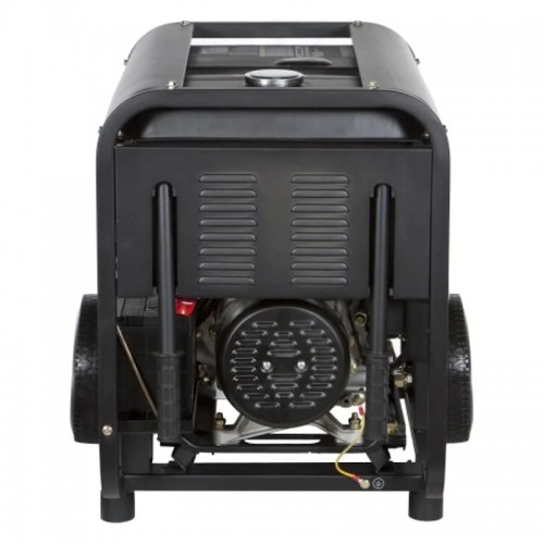 Двигатель легко запускается поворотом ключа в замке зажигания благодаря наличию электростартера. Если у АКБ закончится заряд, то дизель-генератор можно завести при помощи ручного стартера. Кнопка предварительного прогрева облегчает запуск мотора в холодное время. Топливный бак емкостью 14 л оснащен указателем уровня топлива.