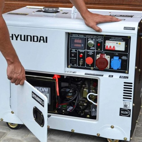 - Hyundai DHY 8500SE-T оснащен металлическим кожухом, который защищает от ударов, атмосферных воздействий и уменьшает уровень шума.